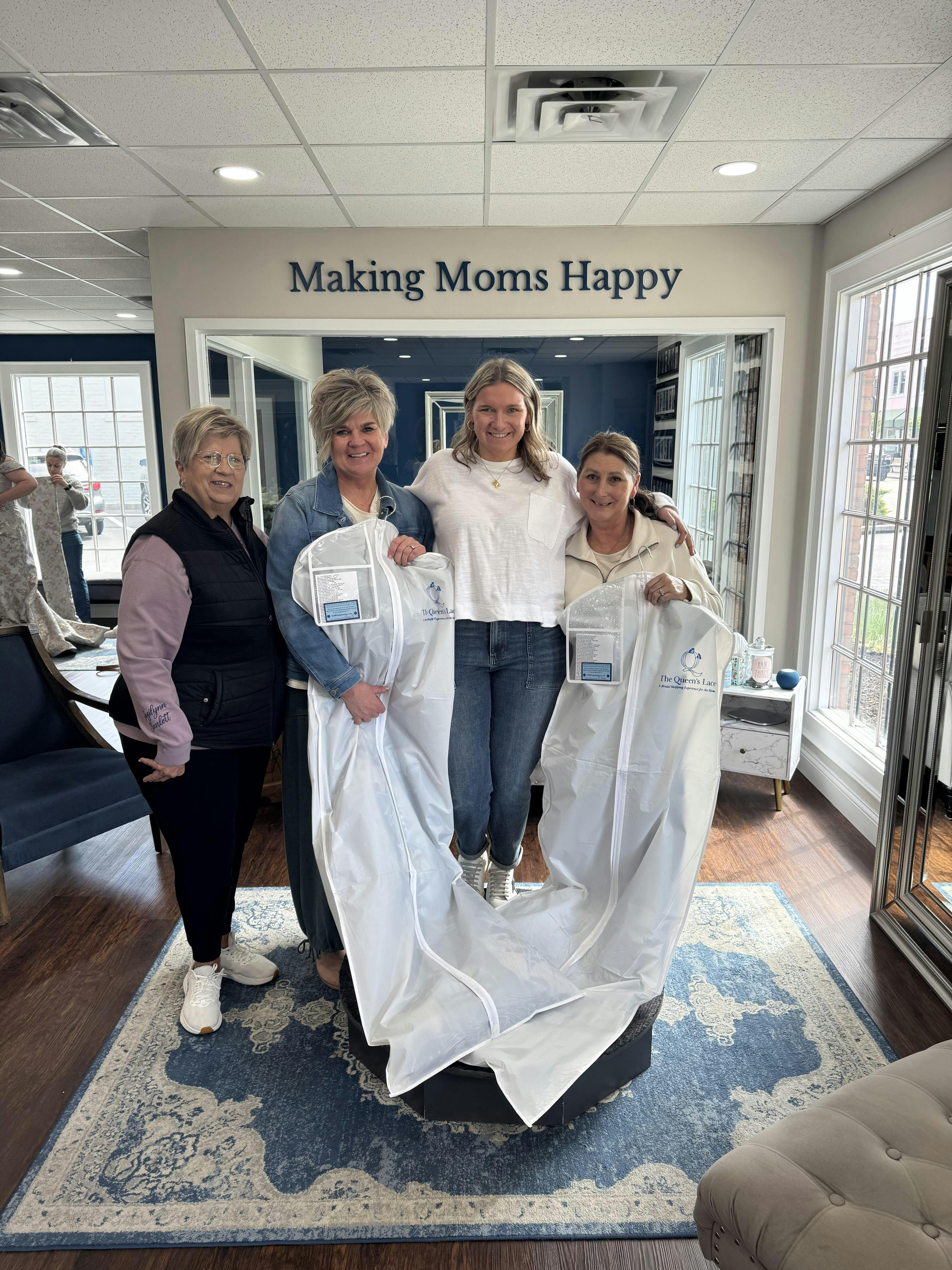 I came with the mother of the groom and I think we both had a great time. We drove in from Indianapolis at the suggestion of the lady doing alterations for me daughter’s dress. We were given a great deal of personal attention and both found dresses we liked. I would recommend The Queen’s Lace to all mothers. The dresses are current and definitely not matronly. Great experience.